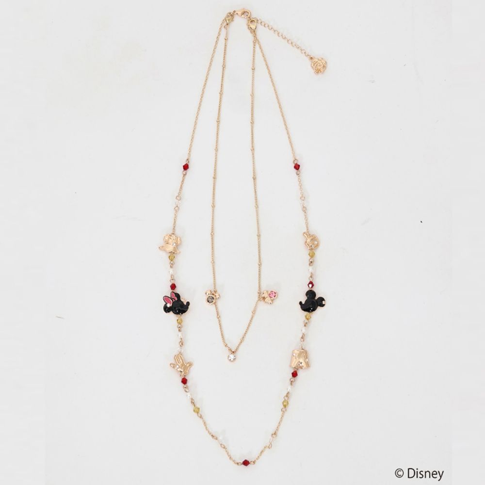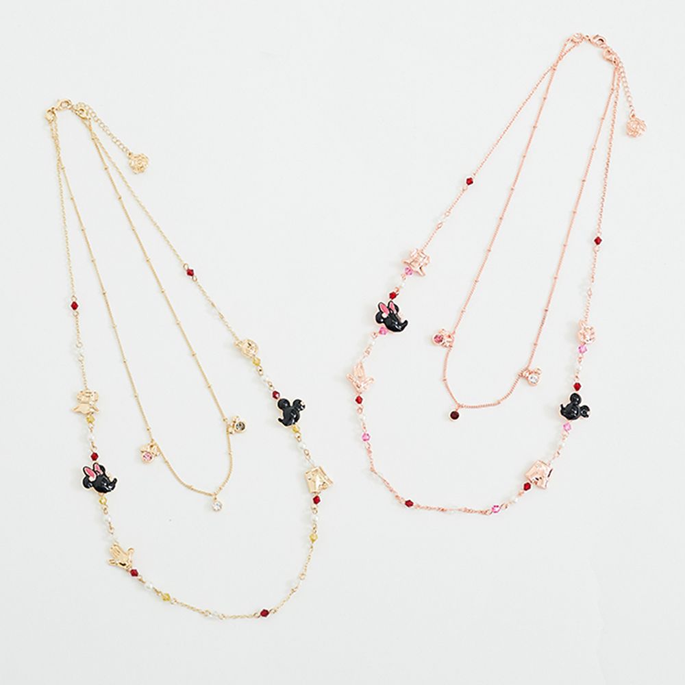 ミッキーマウスとミニーマウスのモチーフが並んだ華やかな2連デザインのネックレスです。