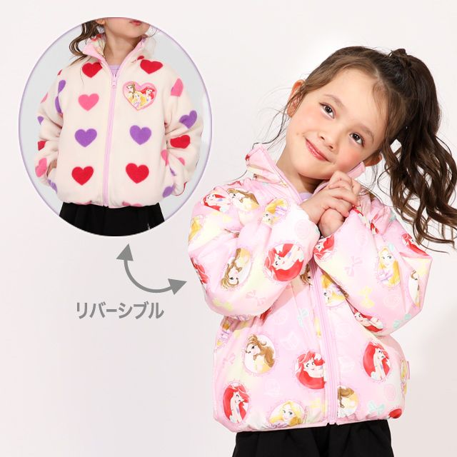 【ベビードール】プリンセス / リバーシブルアウター 1307K / ラプンツェル アリエル ベル / キッズ トップス 長袖 アウター 上着 羽織り ジャケット ブルゾン 中綿 フリース 2Way ガーリー ガールズコーデ ハート ピンク
