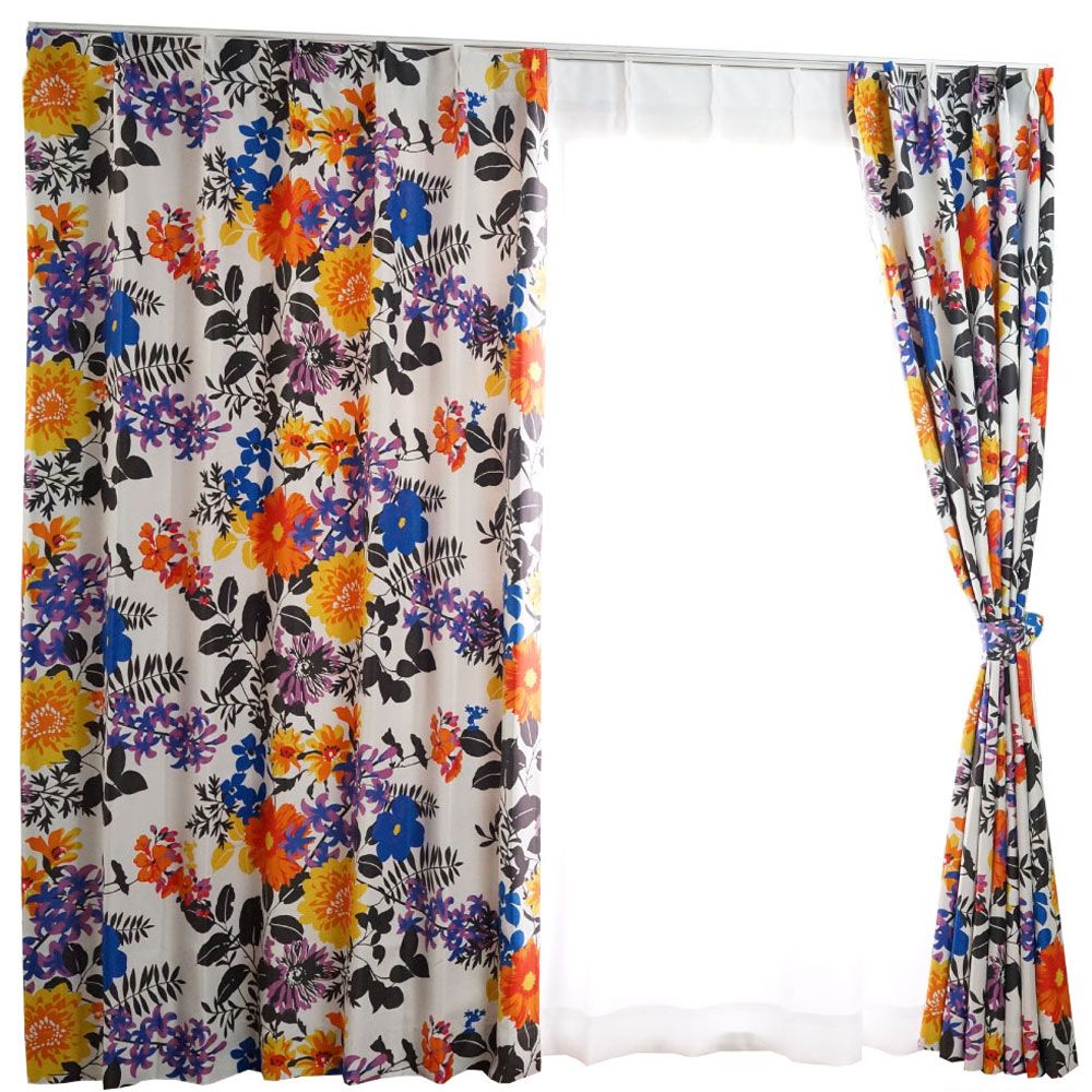 多彩な花が咲き乱れているデザインに、ミッキーとミニーが潜り込んでいます。大らかな構成で、窓辺を華やかに彩ります。