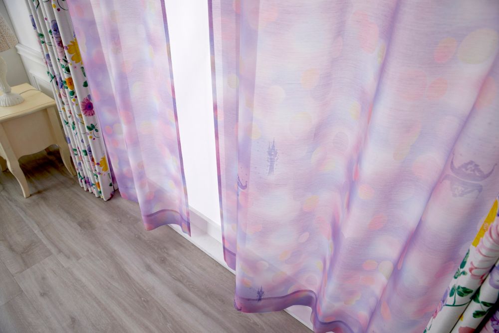 ラプンツェル映画の名シーンをパターンデザインにアレンジしました。シャリ感ある透明感の美しい生地と、夜空に浮かぶ煌びやかなランタンの柄がマッチしたデザインです。