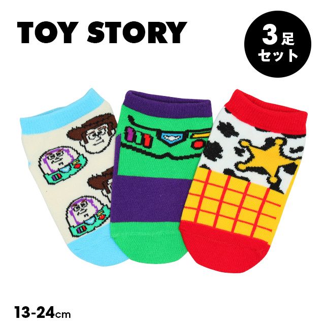 靴を脱いだ時にかわいいトイストーリーのバラエティ豊かな3足組ソックス♪