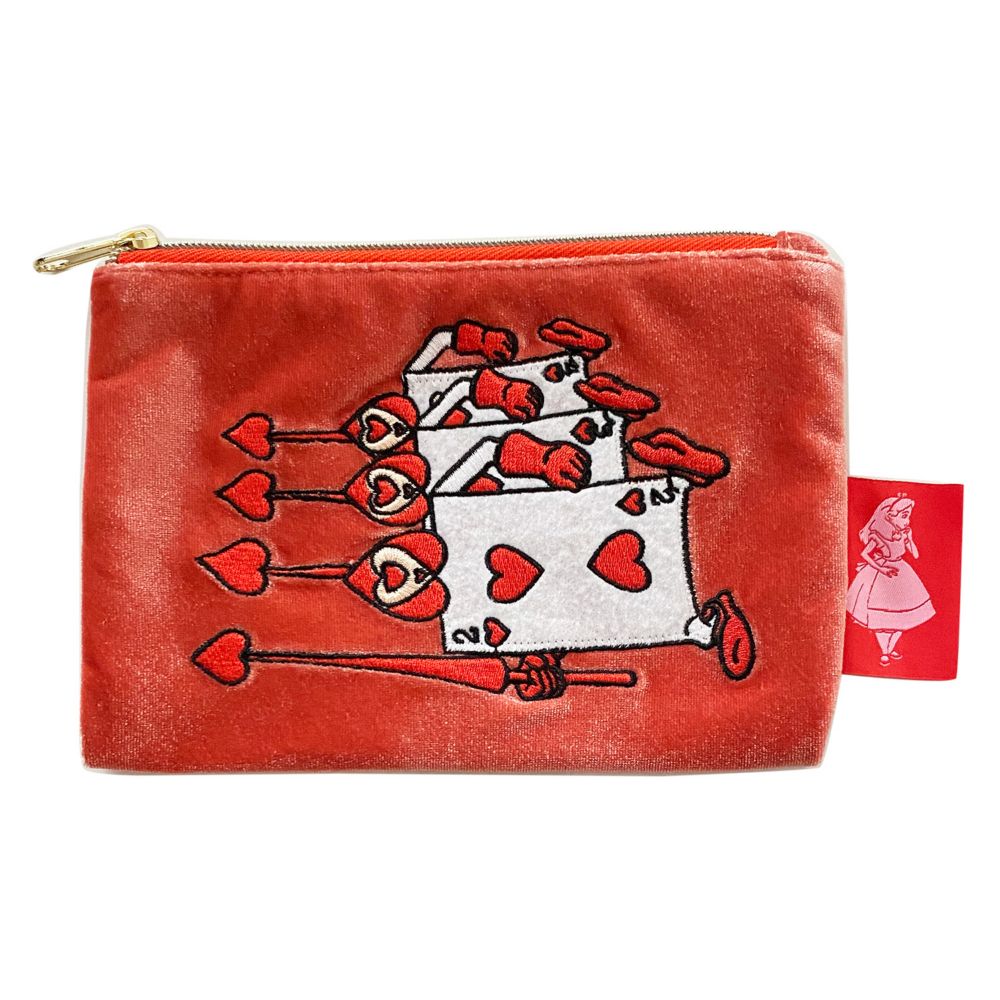 人気のディズニー/ノスタルジカから、ふしぎの国のアリスバージョンのベロアポーチが登場。ノスタルジカらしい色調と、アリスを象徴する薔薇やトランプ兵のデザイン♪ベロア素材がオシャレさをアップさせます。これからのシーズンのプレゼントとしてもオススメのアイテムです。