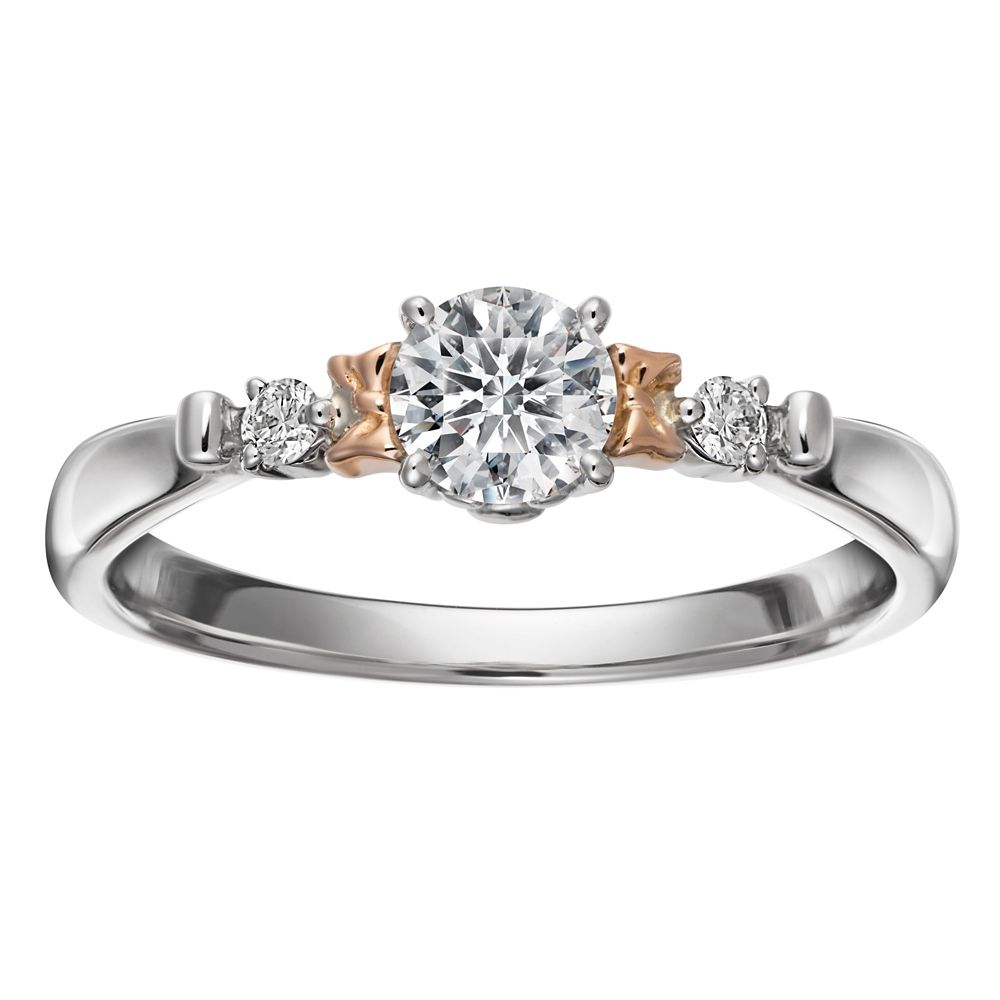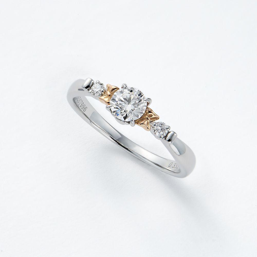 センターのダイヤモンドに寄り添うようにピンクゴールドのミニーのリボンをアクセント。