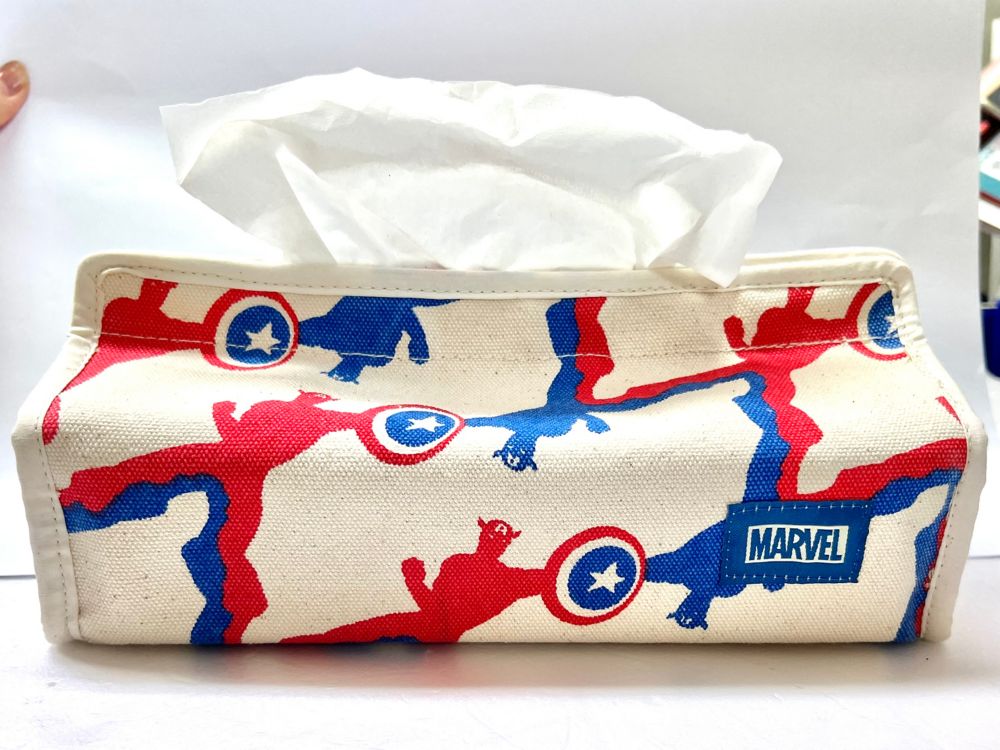 MARVEL 「キャプテン・アメリカ」のデニム&ロゴや柄が魅力のティッシュカバー!ナチュラルな風合いの素材感の良さと、POPなプリントが魅力です。テーブルや家具の上等に置いて使用するのはもちろん、壁に掛けられるので場所をとりません。リビング・キッチン・車など様々な場所で使えます。※一般的なティッシュBOXに対応しています。