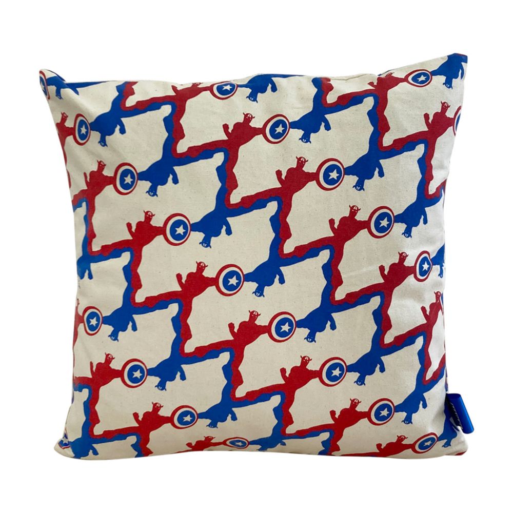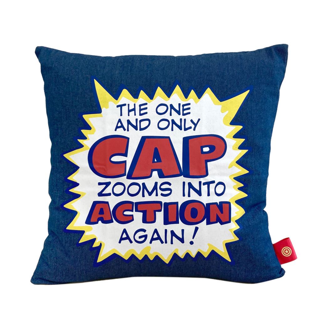 MARVEL 「キャプテン・アメリカ」のデニム&ロゴや柄が魅力のクッションカバー!ナチュラルな風合いの素材感の良さと、POPなプリントが魅力。インテリア映えする素敵なアイテム。ちょっとしたプレゼントにもオススメです。