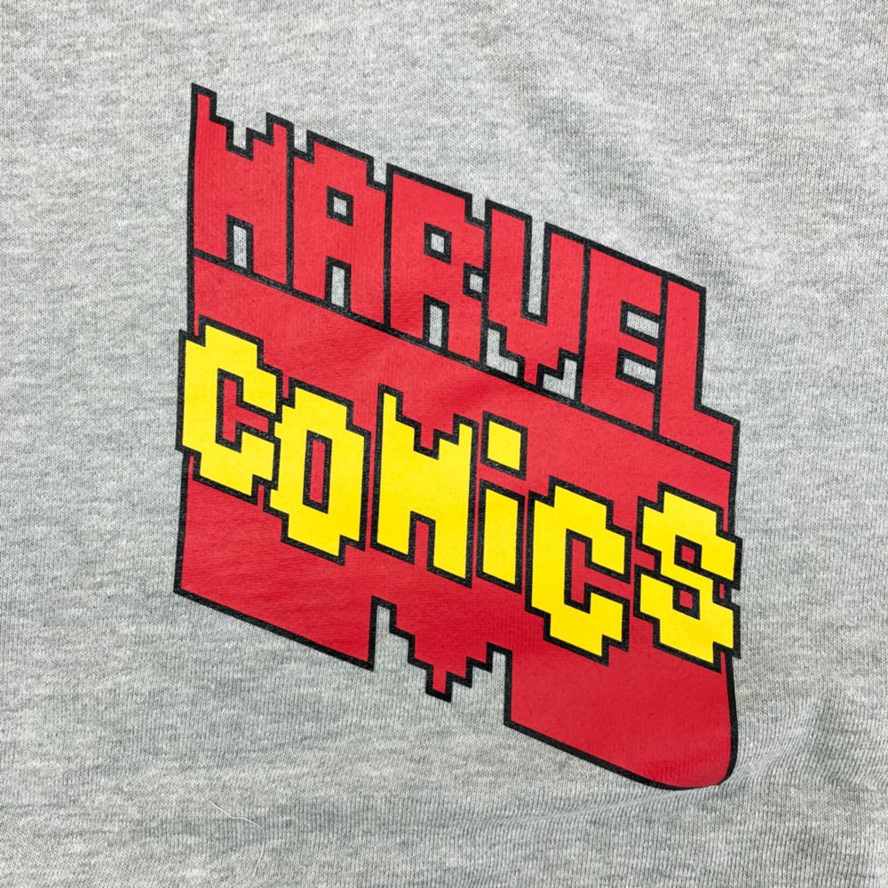 MARVEL プルオーバーフーディ。MARVELグラフレックスがフロントにプリントされたフーデッドデザイン。コーディネートしやすい人気のグレーカラーで、ロングシーズン使えるアイテムです。
