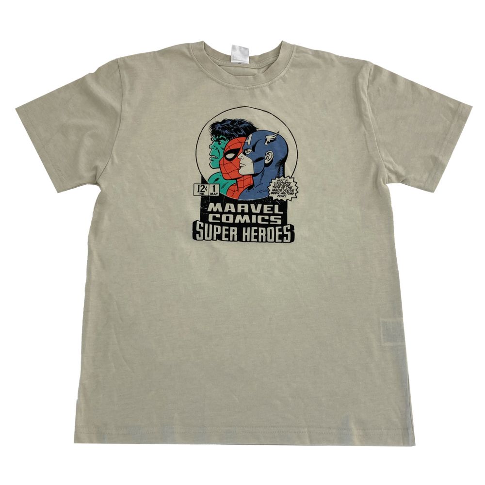 MARVELから人気のヒーローズTシャツが入荷!3ヒーローズの横向きデザイン。カッコよくシンプルなデザインなので、いろんなコーデにも合わせやすいTシャツです♪サイズはM、L、XLからお選び頂けます。※柄の出方には個体差がございます。画像とは異なる場合がございますのでご了承ください。