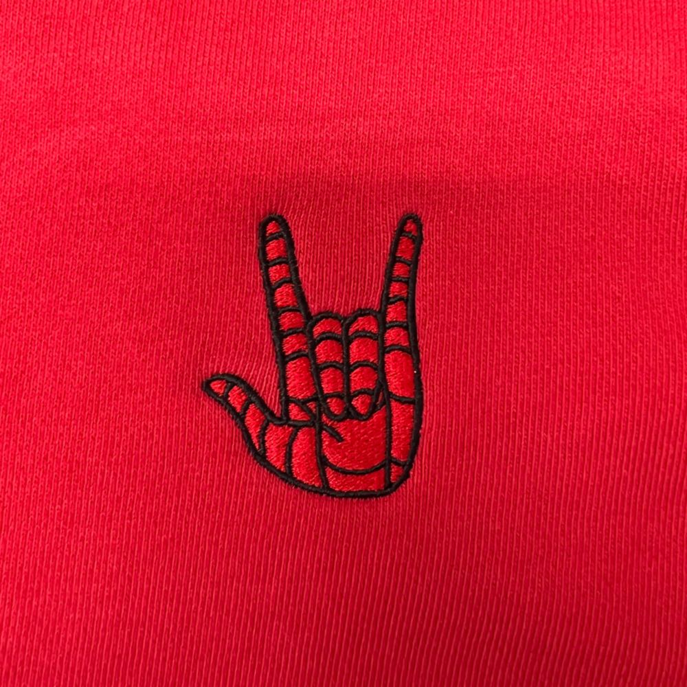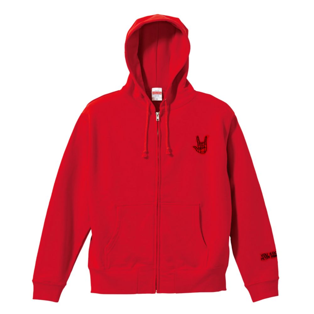 「スパイダーマン」ノー・ウェイ・ホームのフルジップフーディーが新登場。左胸にはハンドサインのワンポイント刺?で、左袖には「YOU ROCK PETER PARKER」のロゴがプリントされたシンプルデザイン。カラーはスパイダーマンを連想させる鮮やかなレッド。Tシャツの上に羽織ったりフードをかぶったりなど、いろんなコーディネートを楽しめます。