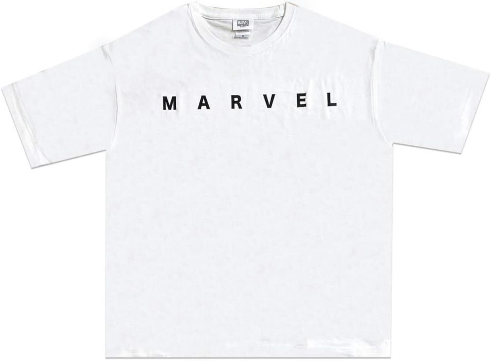 人気ブランドのKANGOLがMARVELとタイアップ!フロントはシンプルなMARVELロゴ、バックスタイルの裾にカンゴールの筆記サイン風デザイン。身幅と肩幅はゆったりしたユニセックスサイズ。MとLの2サイズ展開で、マーベルファン必見のTシャツです。