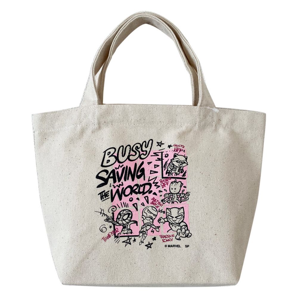 MARVELのランチバッググが新入荷。ポップ色合いとイラストがかわいいデザイン。ランチバッグやサブバッグとして、近所へちょっとお出かけする際に気軽に持って行けるちょうどよい大きさのバッグです。