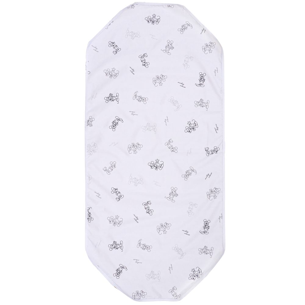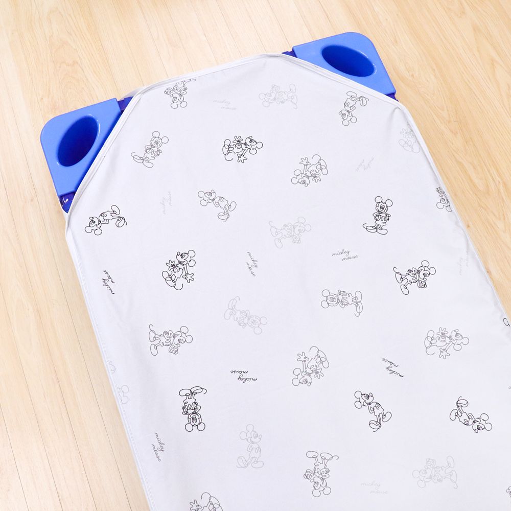 ☆コットに引っ掛けて簡単装着できるコットカバー。保育園や幼稚園でのお昼寝タイムが楽しくなる、ラフに描かれたミッキーがおしゃれなモノトーン調のデザイン。