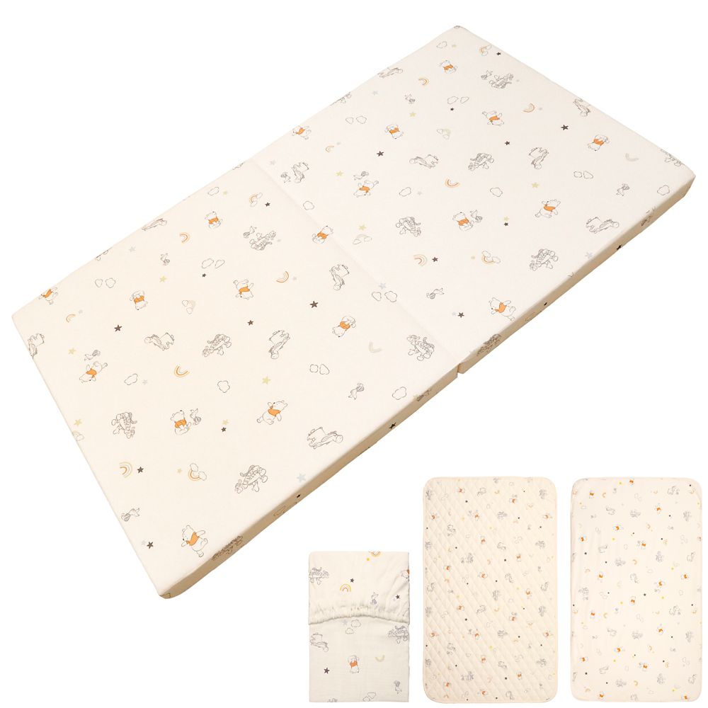 ☆プーさんと仲間たちが楽しそうに遊んでいるようすが描かれたナチュラルなデザイン地は、肌あたりがやわらかくなるピーチスキン加工を施しました。触れた時の嫌なヒヤっと感も抑えてくれます。さらに吸水加工を施し、吸水性をアップさせました。