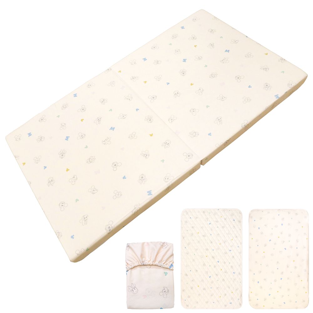 ☆成長途中の赤ちゃんの骨や筋肉をしっかりと支える「固わた敷きふとん」と「フィッティングシーツ/防水シーツ/防水キルトパッド」が付いた、おねしょや寝汗対策ができる4点セット。