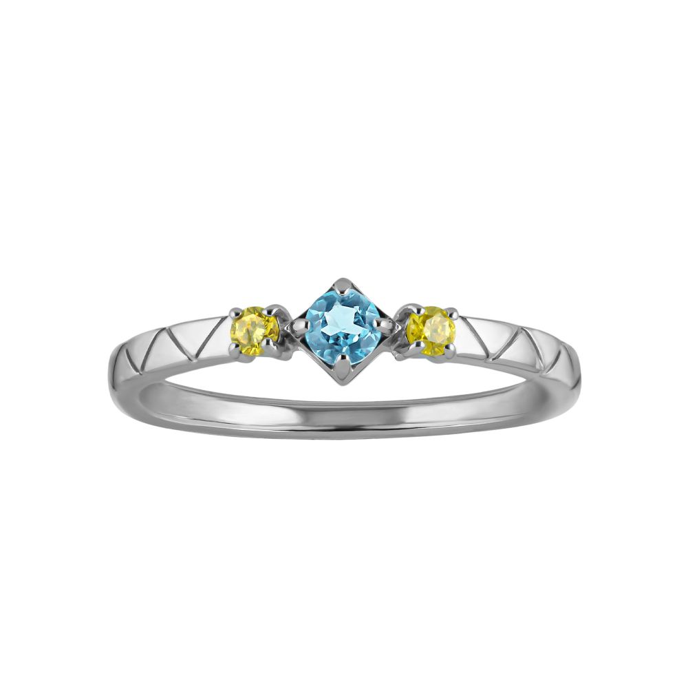 スターリングシルバー(ロジウムコーティング)、ブルートパーズ、キュービックジルコニア