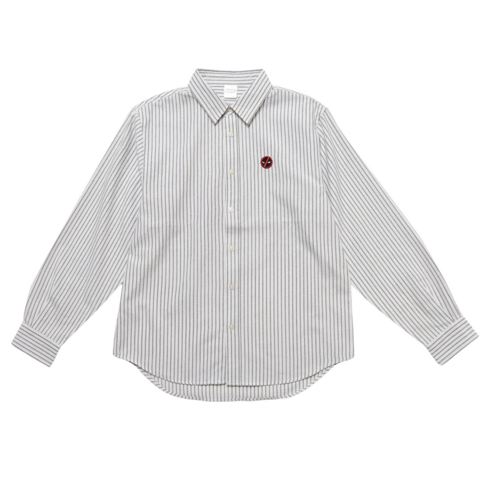 MARVELアパレルシリーズ。マーベルのキャラクターが胸元にワンポイント刺繍されたオックスフォードのストライプシャツ。レギュラーシャツデザインなので、ビジネスから普段着まで幅広く活用出来ます。ユニセックスタイプです。