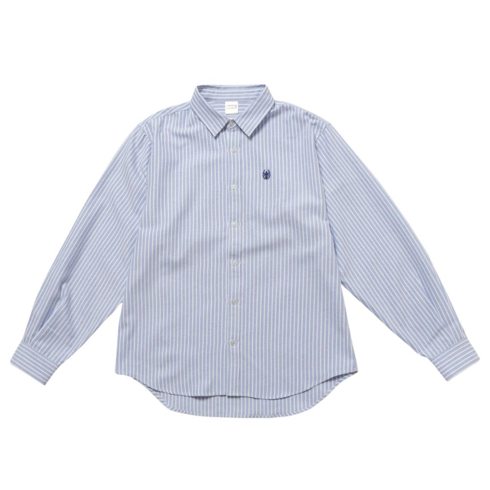 MARVELアパレルシリーズ。マーベルのキャラクターが胸元にワンポイント刺繍されたオックスフォードのストライプシャツ。レギュラーシャツデザインなので、ビジネスから普段着まで幅広く活用出来ます。ユニセックスタイプです。