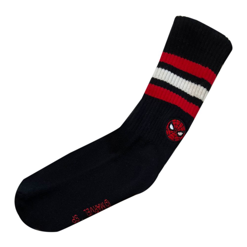 MARVELキャラクターの ”ワンポイント刺繍ソックス” 巷でもちょっとした人気のレトロな配色が目を惹く靴下です。履き口にはロゴやキャラクター名が入っているので、折り返して履くのがオススメ!足底はパイル素材になっているので、たくさん歩く日も快適です。スニーカーやブーツでチラ見せして、足もとファッションを楽しんでください♪