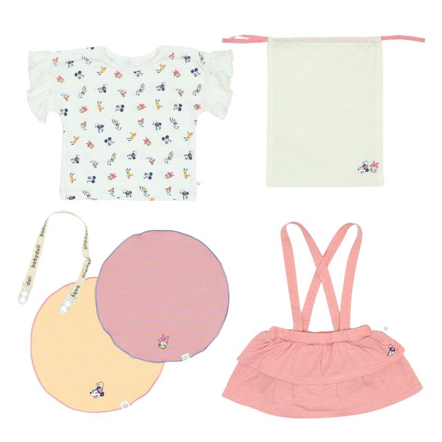 【ベビードール】ミニー ギフトBOX付き 5点ギフトセット 6263B 【DY】 / ベビーサイズ 赤ちゃん 出産祝い 贈り物 プレゼント ベビー服 ベビー用品 半袖 Tシャツ スカート スタイ クリップ 巾着 コーデセット