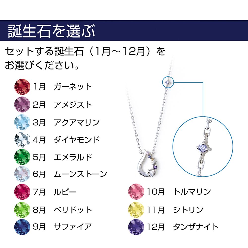 トップのサイドにあるチェーン部分には、誕生石を1石セットすることができ、さりげなく特別感も演出。