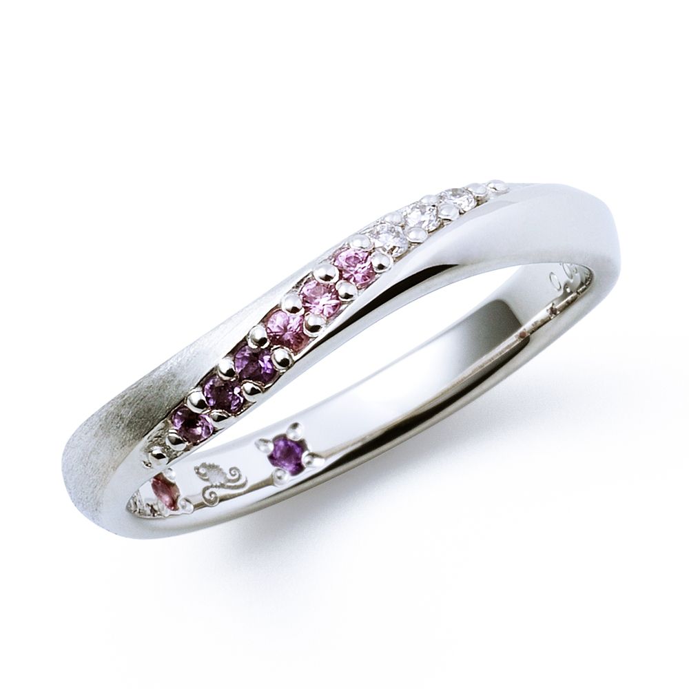 レディースは、アメジスト・ピンクサファイア・ダイヤモンドをグラデーションになるよう配し、色彩の美しい「ラプンツェル」の物語を表現。