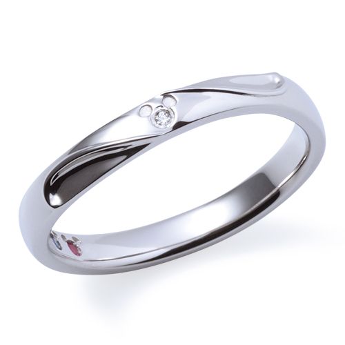 サイドにはダイヤモンド入りのミッキーのモチーフが輝き、内側のミッキーのモチーフにはお互いのバースデーストーンをセットできます。