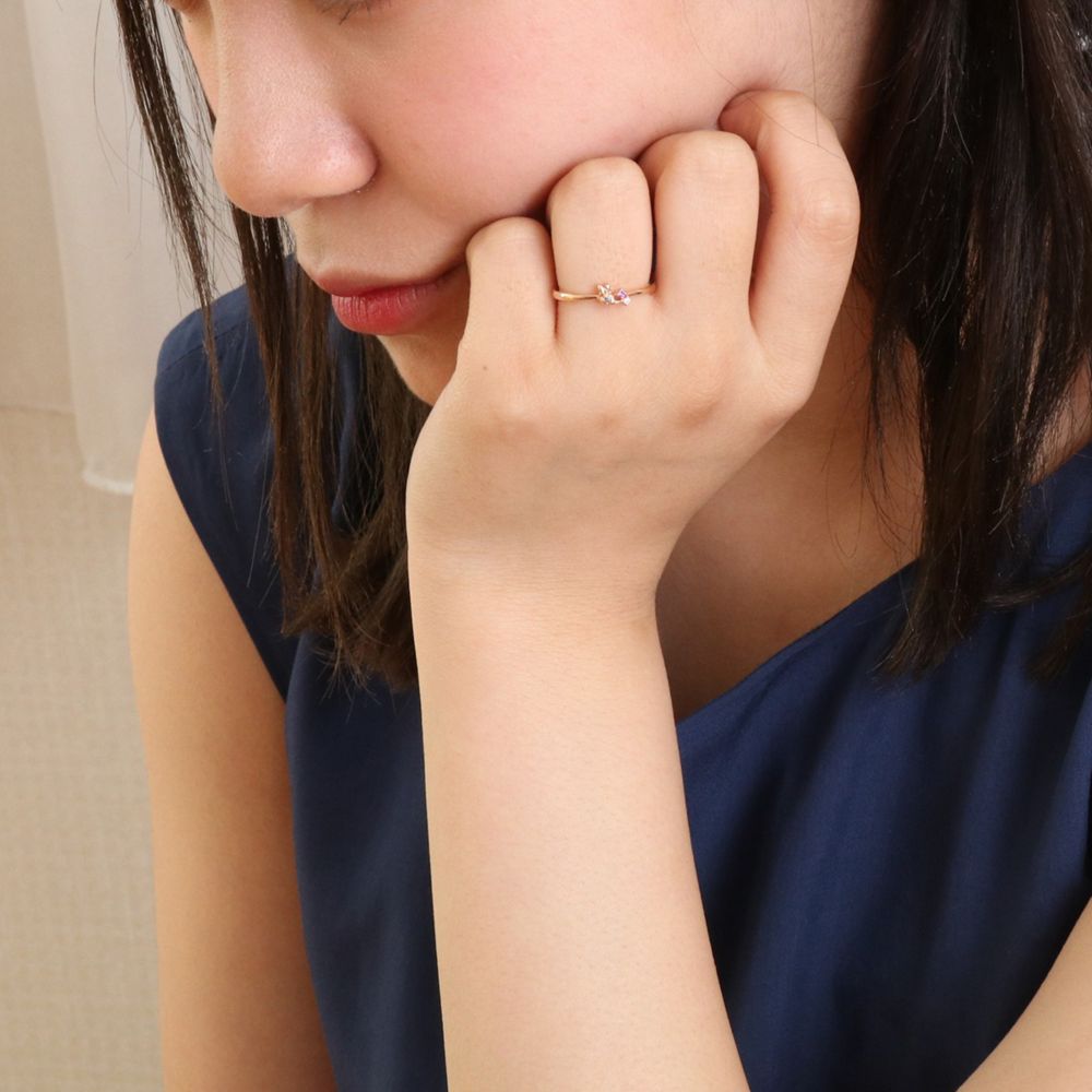 デイジーのシルエットの隣にイメージカラーのストーンをセットした、シンプルな中にもキャラクターらしさが詰め込まれたリング。