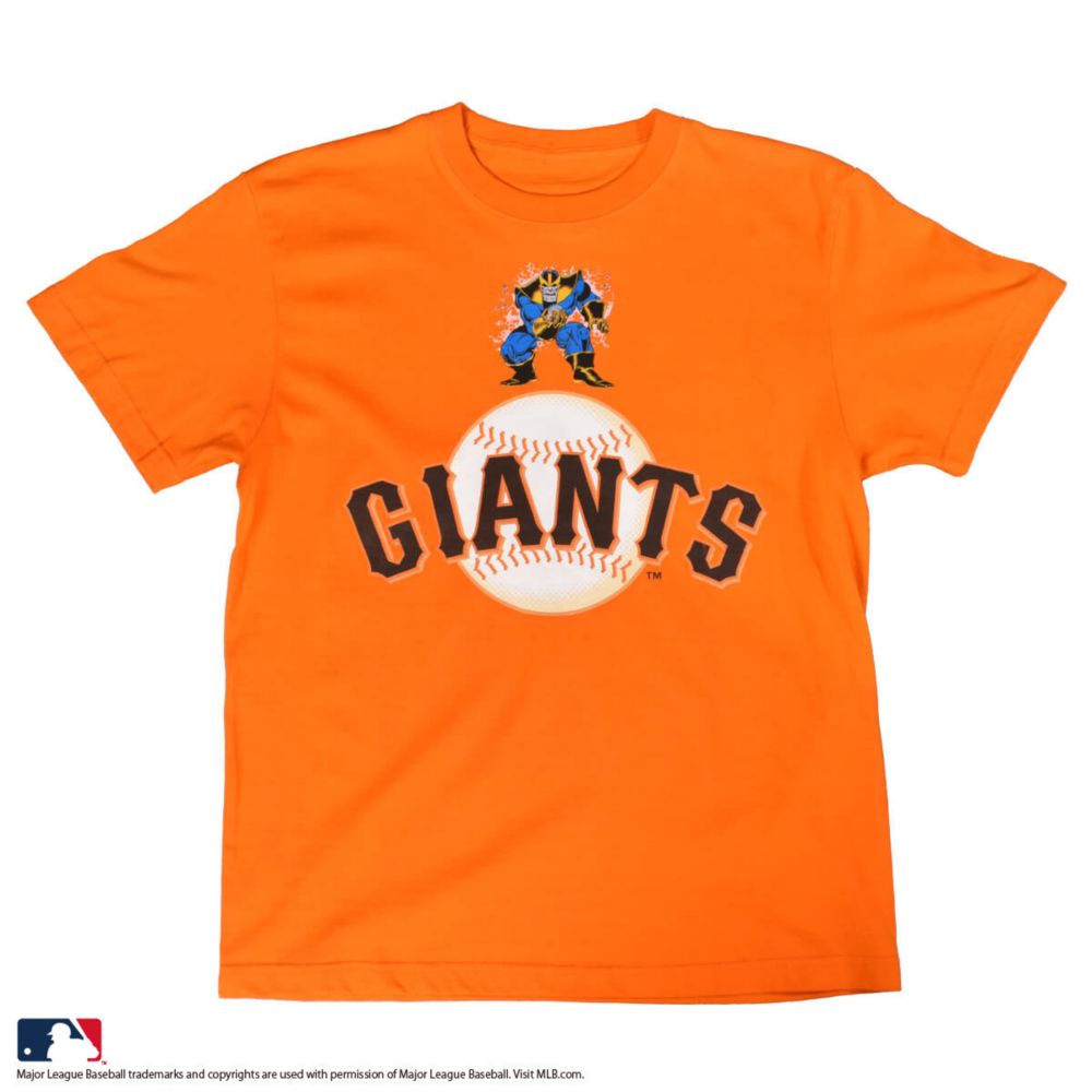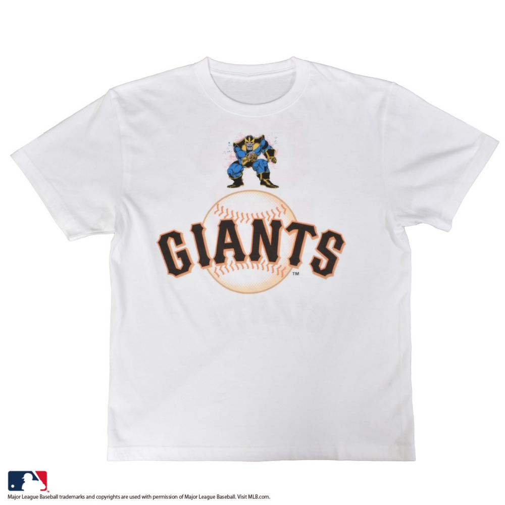 巨大な敵サノスとサンフランシスコ・ジャイアンツの印象的な組み合わせのデザインは、スポーティにも普段のコーディネートの外しアイテムとしても着回し力抜群です!