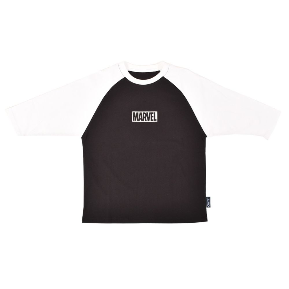 男女問わずにクールに着こなせるロゴデザインのラグランスリーブTシャツ。ホワイトとブラックの落ち着いたモノトーンカラーなのもクールなポイント。