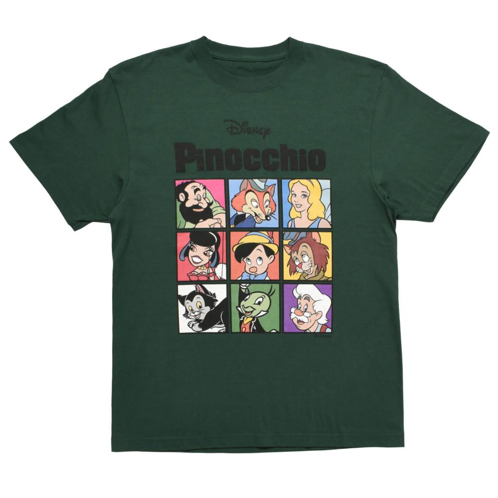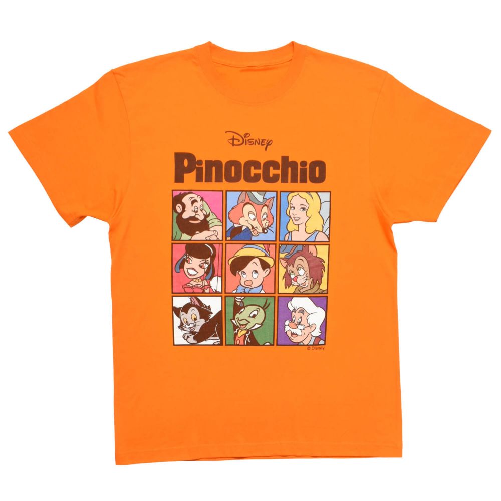 こちらは「ピノキオ」を始め登場キャラクターたちを9パネルにデザインしたTシャツです。