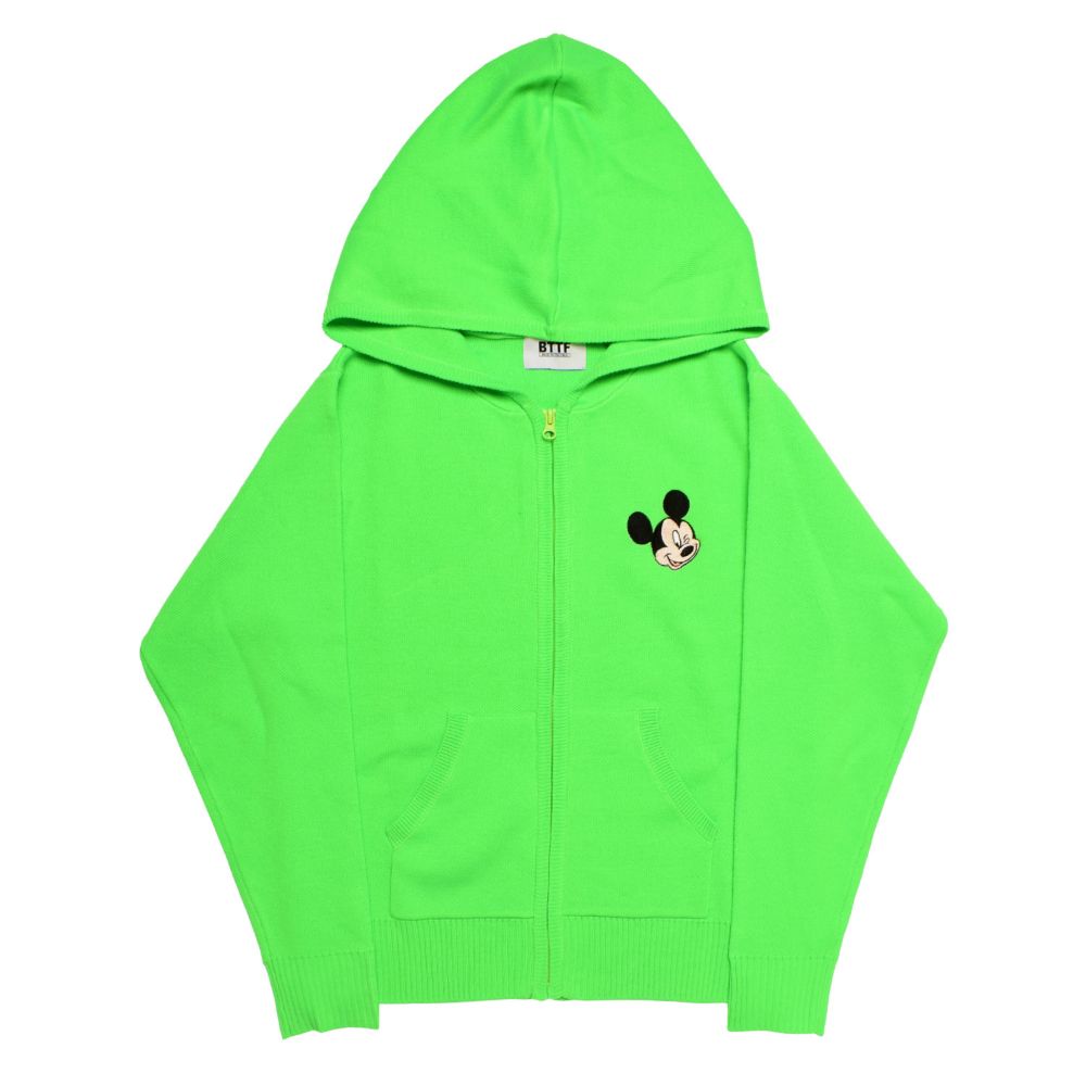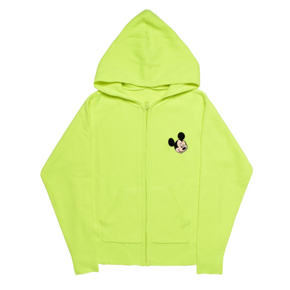 胸元に「ミッキーマウス」の刺繍をデザインしたフルジップパーカー。ビビッドなカラーが目を引き、スポーツファッションのアクセントに。