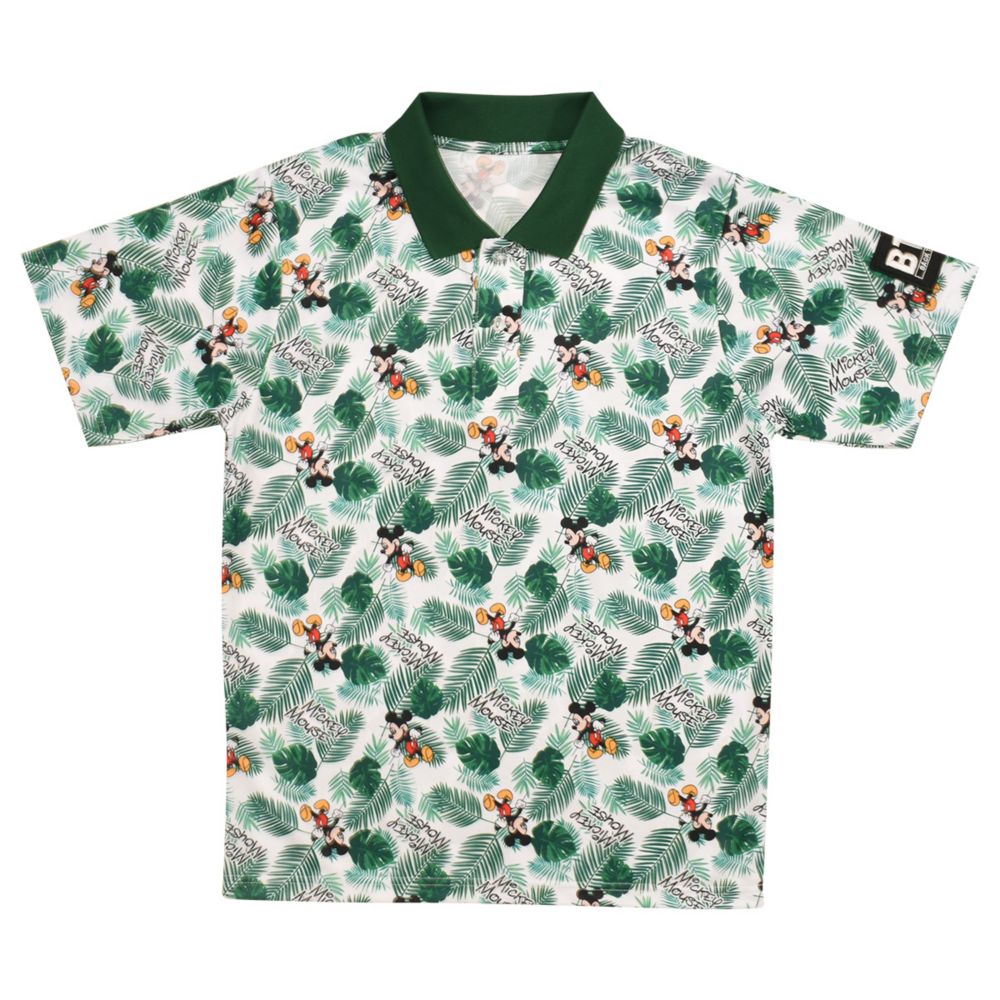 リゾートムードを盛り上げるリーフ柄デザインのポロシャツです。