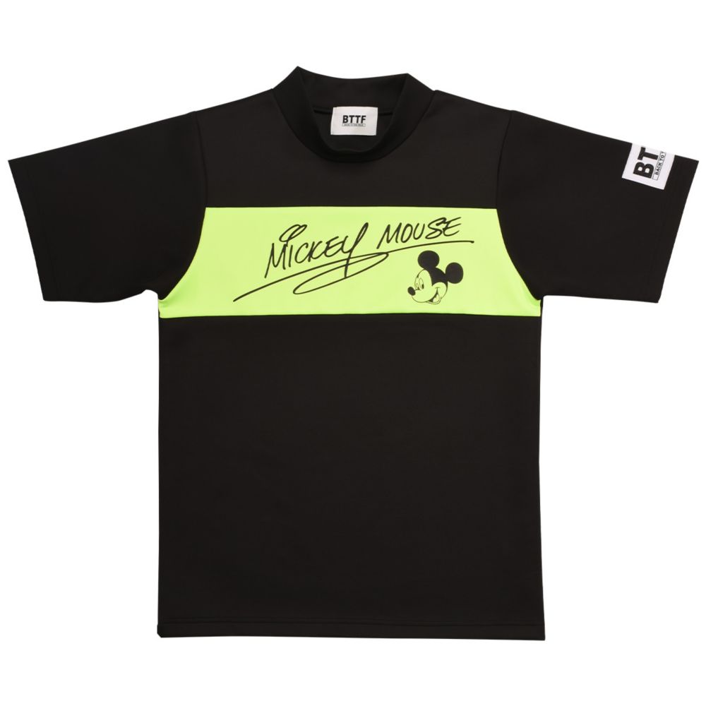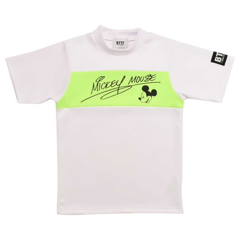 胸元のビビッドカラーがインパクト大なモックネックTシャツです。