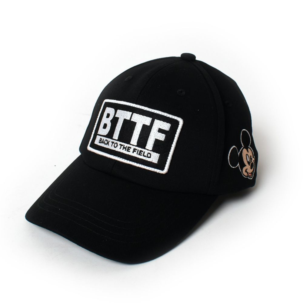 フロントはBACK TO THE FIELDのロゴをデザインし、サイドに「ミッキーマウス」の刺繍をデザインしたキャップです。