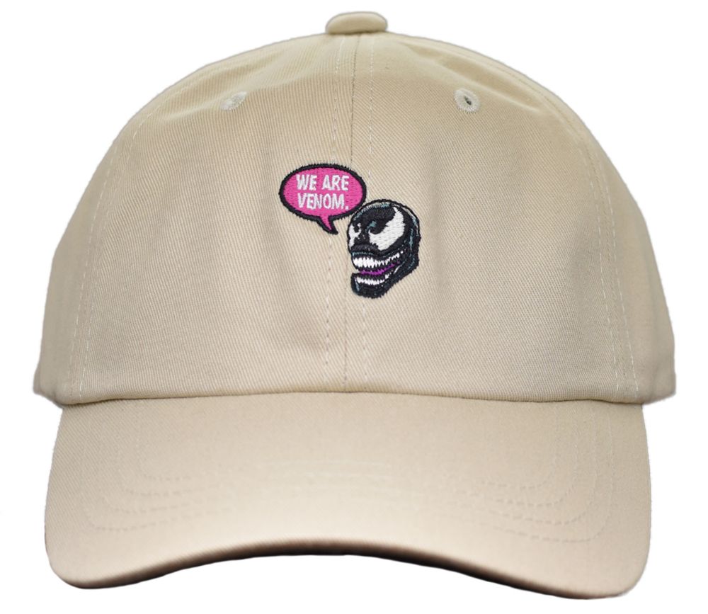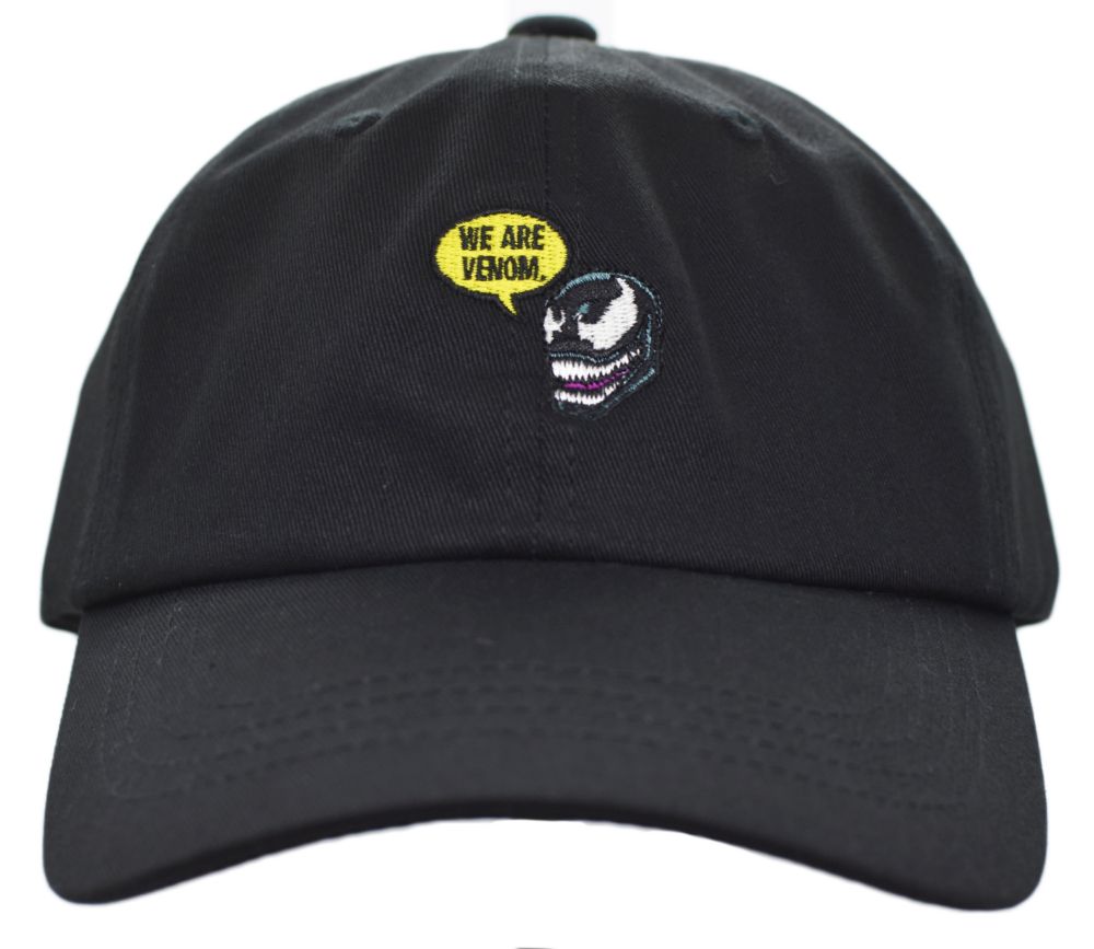 MARVEL VENOMの6パネルキャップ。VENOMの愛らしいフェイスと"WE ARE VENOM"のロゴ刺繍が入ったベーシックなカーブバイザーキャップ。