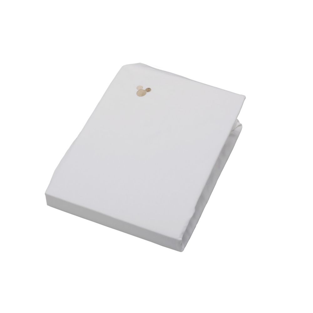 シックなペールトーンのコットンサテン地にゴールドにミッキーマウス刺繍を施しました。