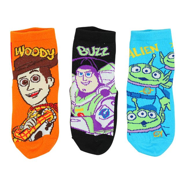 靴を脱いだ時にかっこいいウッディ・バズライトイヤー・エイリアンのバラエティ豊かな3足組ソックス♪肌馴染みの良いやわらかな履き心地で程よいフィット感。