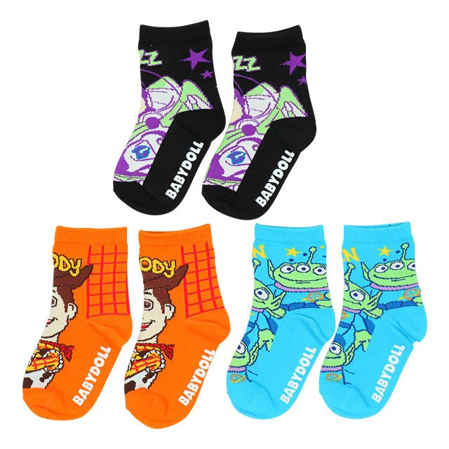 ベビーサイズ キッズ 雑貨 靴下 男の子 女の子 こども 子ども服 くつ下 靴下3足セット 靴下3足組み 靴下3点セット 3Pソックスセット キャラクターソックス キャラソックス トイストーリー バズライトイヤー ウッディ エイリアン カジュアル ポップ カラフル 保育園 幼稚園 通園通学 おしゃれ 可愛い かわいい かっこいい