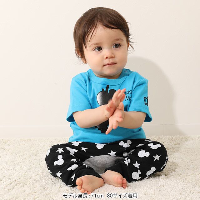 【ベビードール】ミッキー 総柄モンキーパンツ 7920B / ベビー服 ボトム 長ズボン おしり周りゆったり ウエスト総ゴム ゴム穴付き