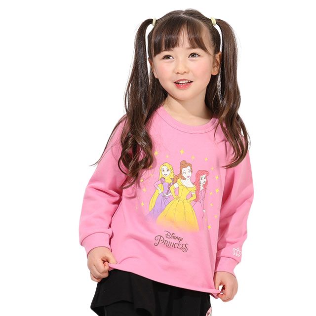 ベビーサイズ キッズ 女の子 こども 子ども服 トップス 長袖 プルオーバー フード無し ポップ カジュアルコーデ ロゴ ベーシック カジュアル シンプル クール かっこいい おしゃれ 可愛い かわいい ピンク ラプンツェル アリエル ベル リトルマーメイド 美女と野獣 お姫様