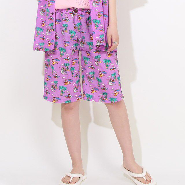【ベビードール】親子お揃い リゾート柄ハーフパンツ 8267A (トップス別売) / ミッキー ミニー ドナルド 大人 ユニセックス 男女兼用 リンクコーデ ペアルック 親子コーデ ボトムス ショートパンツ 短パン 半ズボン 吸汗 速乾 ウエスト総ゴム フェイクボタン