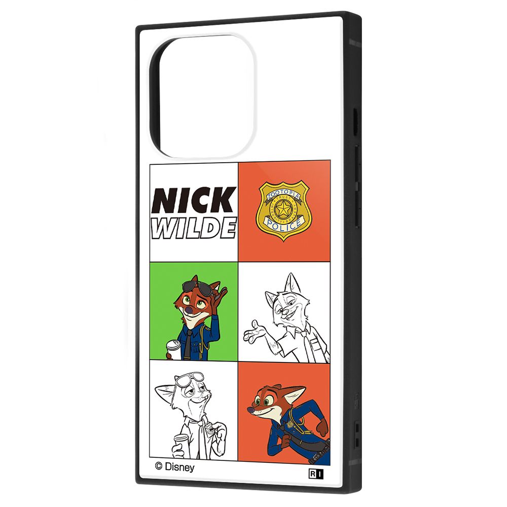 個性的な四角いフォルムと/衝撃に強いTPU素材の側面/薄くて軽く透明度の高いPCパネル を背面にセットした 耐衝撃ケース KAKUハイブリッド。端末側面保護/衝撃吸収エアクッション付。背面パネルには『ズートピア』のデザインがプリントされ/スマートフォンを鮮やかに彩ります。キャラクター名: ニック・ワイルド※本製品に端末本体は付属致しません。
