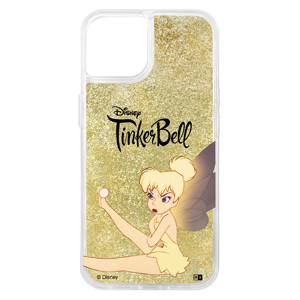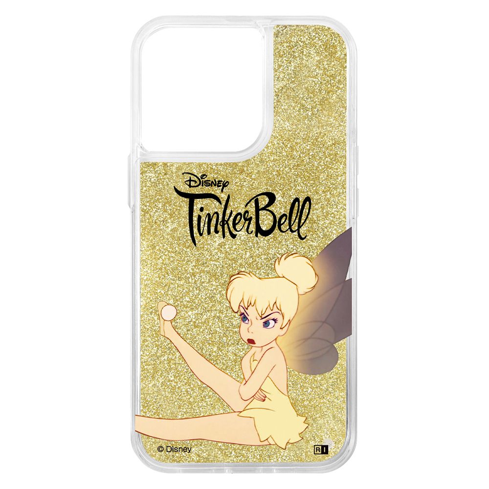 キラキララメが流れるグリッターケース。背面はPC素材/側面は衝撃に強いTPU素材を使用したハイブリッドケースです。ケースに閉じ込めたグリッターが『ピーター・パン』のデザインをよりかわいく演出します。キャラクター名: ティンカー・ベル