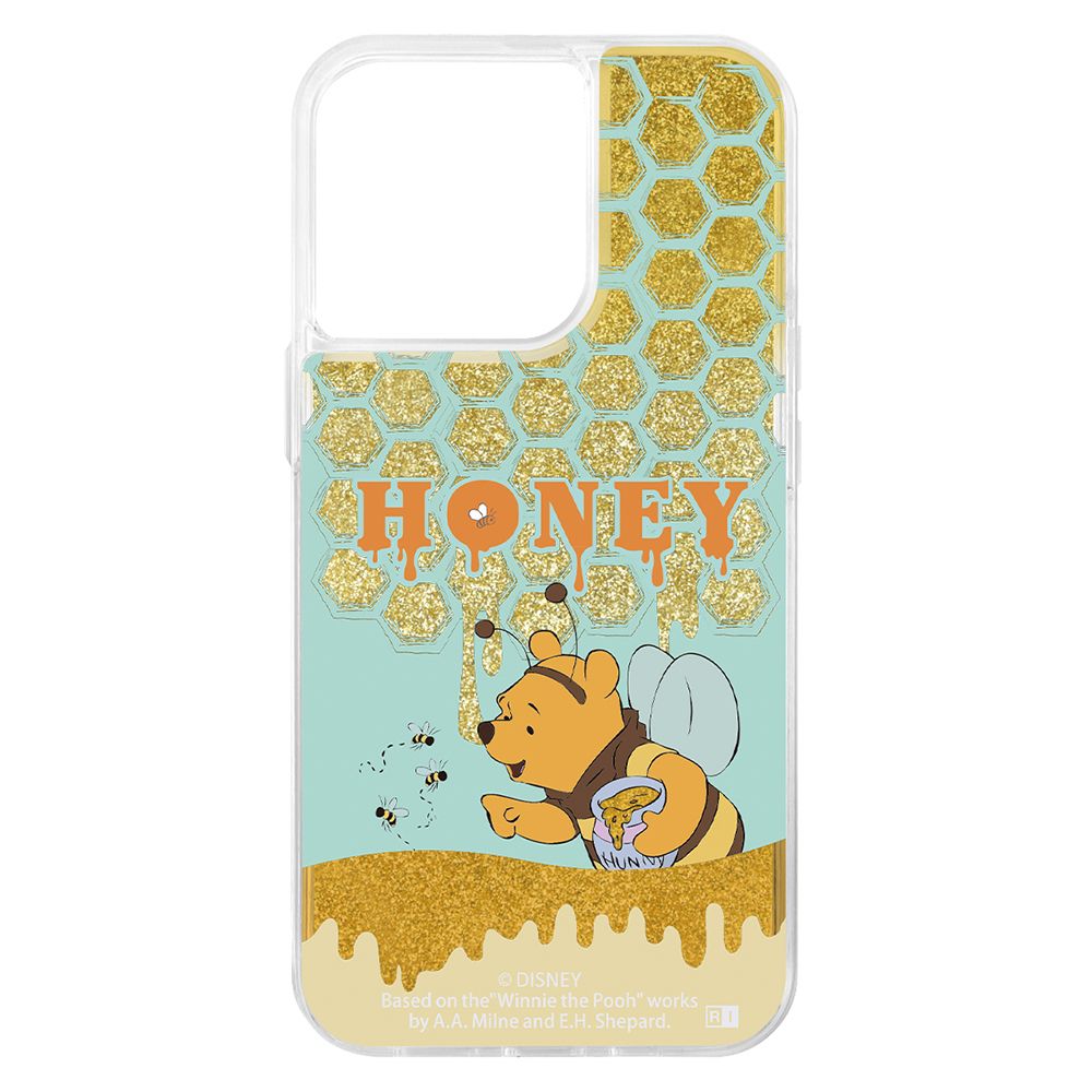 背面はPC素材、側面は衝撃に強いTPU素材を使用したハイブリッドケースです。ケースに閉じ込めたグリッターが『くまのプーさん』のデザインをよりかわいく演出します。キャラクター名: プーさん ( プー )