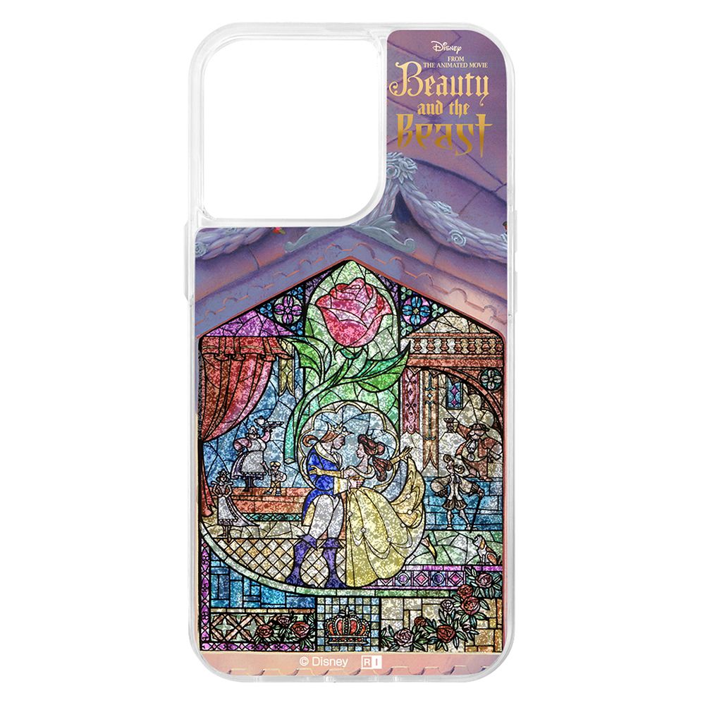 キラキララメが流れるグリッターケース。背面はPC素材/側面は衝撃に強いTPU素材を使用したハイブリッドケースです。ケースに閉じ込めたグリッターが『美女と野獣』のデザインをよりかわいく演出します。キャラクター名: ベル / 王子