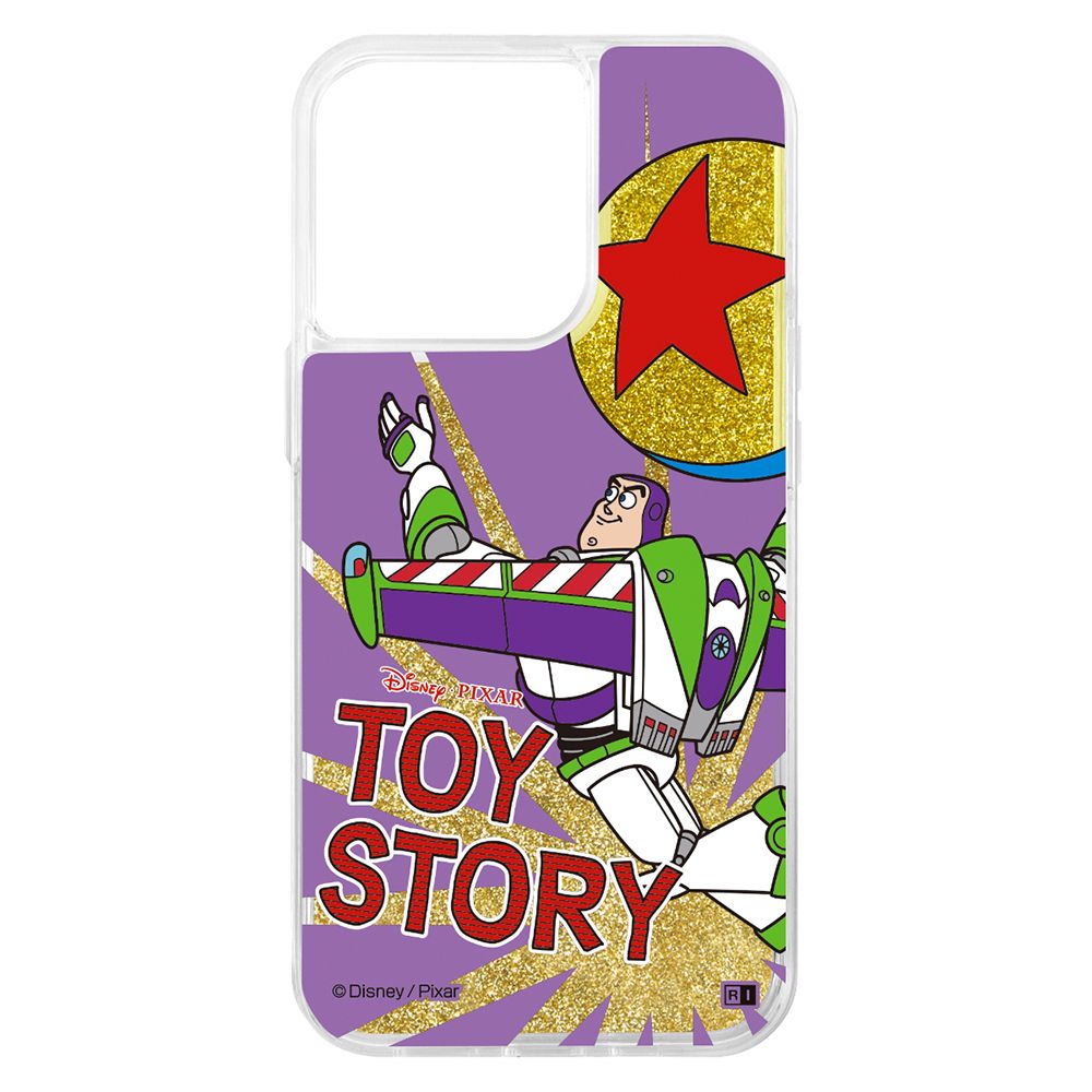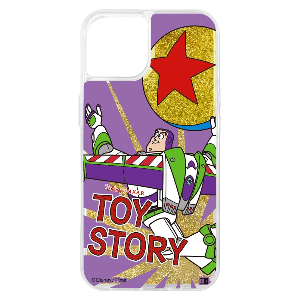 キラキララメが流れるグリッターケース。背面はPC素材/側面は衝撃に強いTPU素材を使用したハイブリッドケースです。ケースに閉じ込めたグリッターが『トイ・ストーリー』のデザインをよりかわいく演出します。キャラクター名: バズ・ライトイヤー ( バズ )