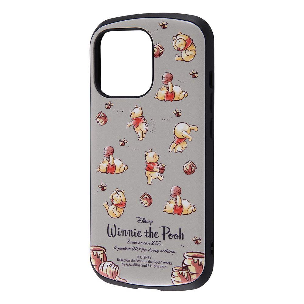 ソフトとハードの二重構造。衝撃をやわらげるTPU×鉛筆硬度3Hで傷に強いポリカーボネイト。ケース上部と下部は衝撃をやわらげるエアクッション構造。ケース内側は衝撃から端末を守るハニカム構造。カメラに傷が付きにくい肉厚設計。くまのプーさん プー