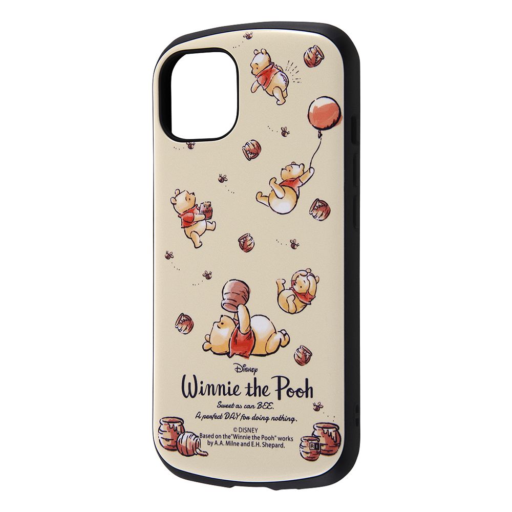 ソフトとハードの二重構造。衝撃をやわらげるTPU×鉛筆硬度3Hで傷に強いポリカーボネイト。ケース上部と下部は衝撃をやわらげるエアクッション構造。ケース内側は衝撃から端末を守るハニカム構造。カメラに傷が付きにくい肉厚設計。くまのプーさん プー