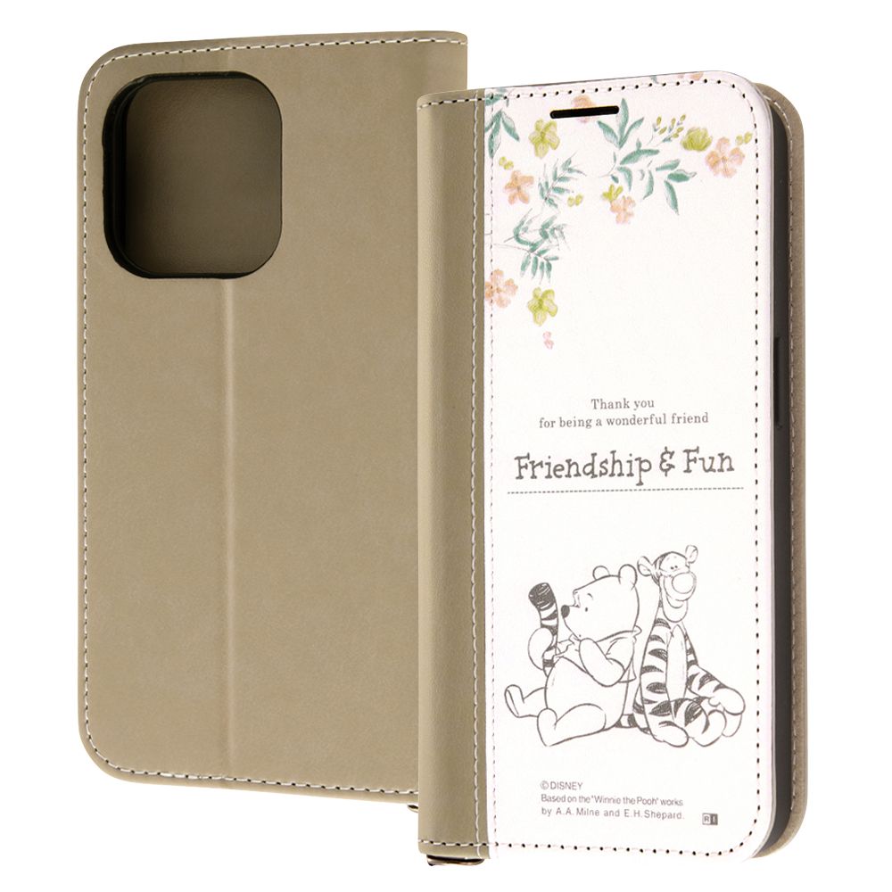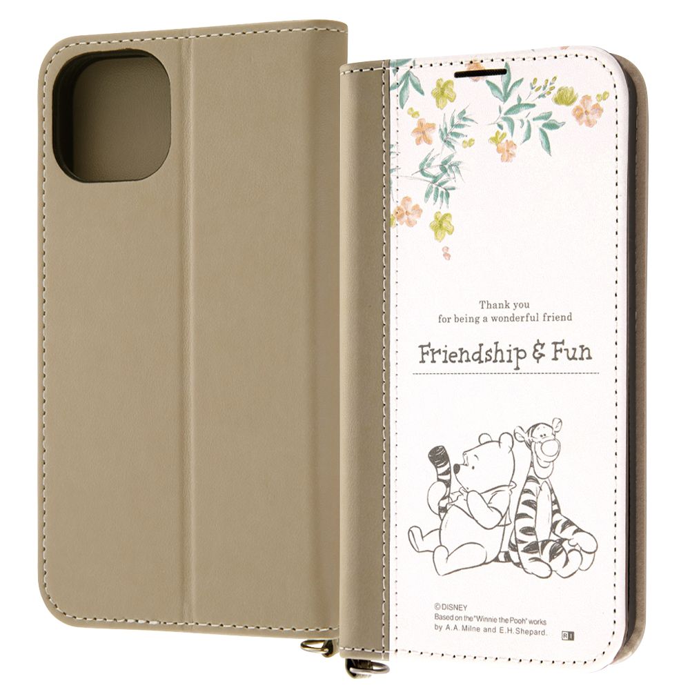 『くまのプーさん』のデザインが印刷されたバイカラーの手帳型ケース。大容量のカード収納ポケット、Dリング、ストラップホール付。マグネットを使用していないため、磁気が入ったカード等も収納いただけます。キャラクター名: プー ( プーさん )/ ティガーストラップホール付 Winnie the Pooh ぷー てぃがー ボタニカル トープ Walt Disney でぃずにー