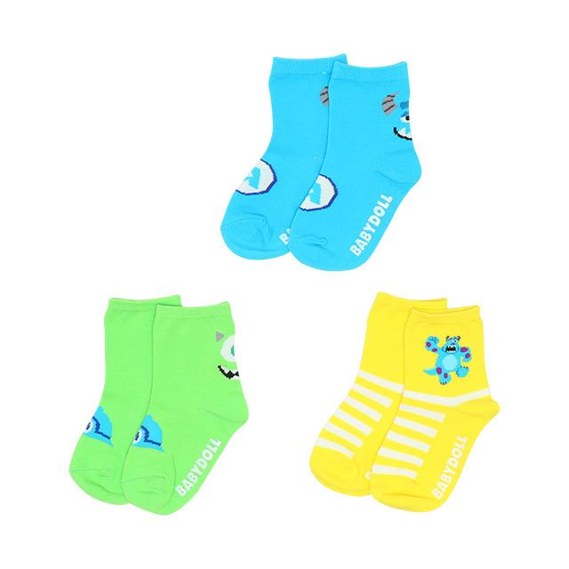 【ベビードール】モンスターズインク ソックスセット 8416 / サリー マイク ベビーサイズ キッズ くつ下 靴下 3足セット 3足組み 3点セット 10-13cm・13-15cm滑り止め付き