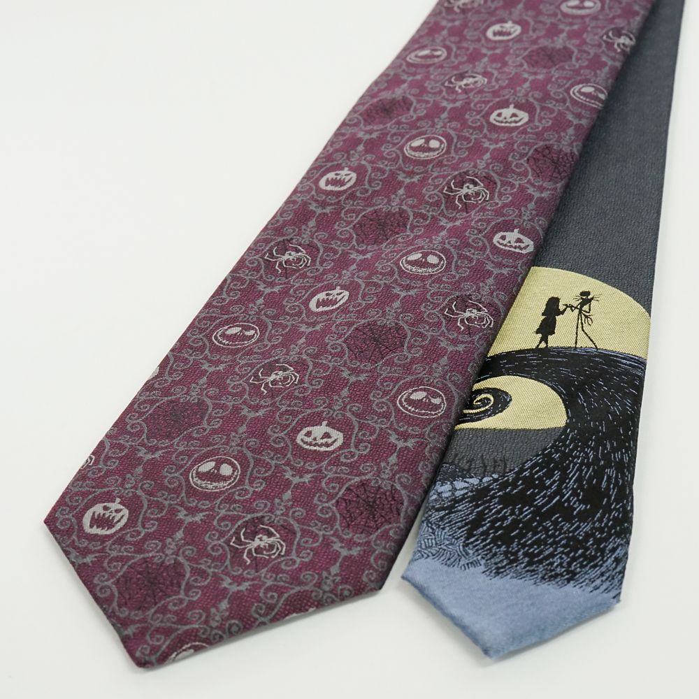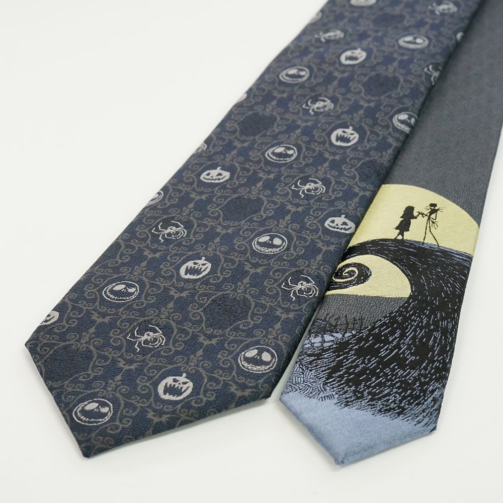 ナイトメア―・ビフォア・クリスマス ジャック柄ネクタイ。 ナイトメアの世界観がたっぷり詰め込まれた、こだわりの一本です。 ダークなイメージで、大人なコーディネートにおすすめです。 もちろん!ハロウィンにもピッタリ。 ディズニーがお好きな方へのプレゼントにもおすすめです。